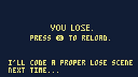 Now when you lose, you don't have to reset the cart and read the opening dialogue all over again. Instead it'll restart the game to after the dialogue. Hopefully that helps make things less annoying!...